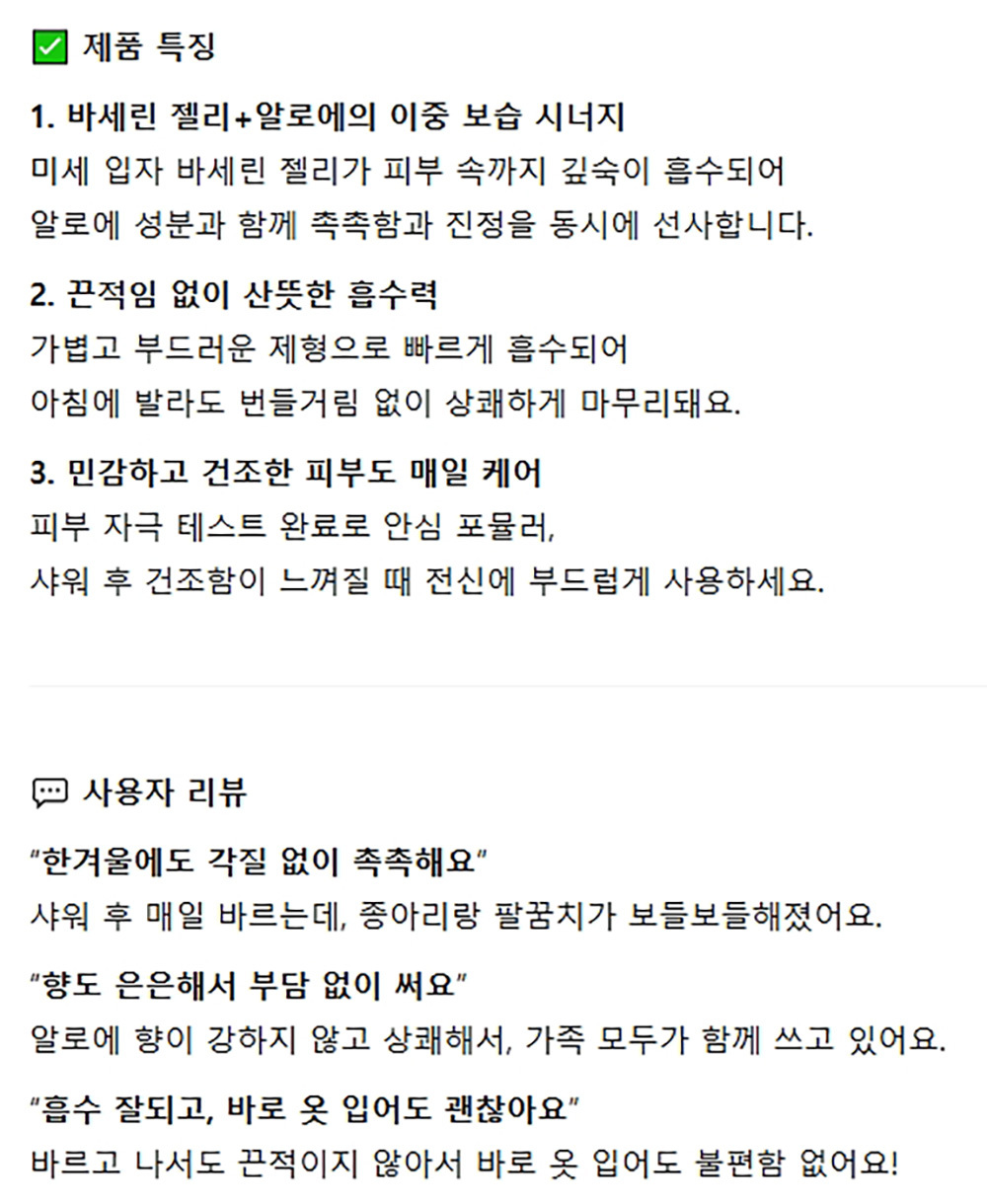 끈적임없이 산뜻한 흡수력 알로에 바디로션 600ml
