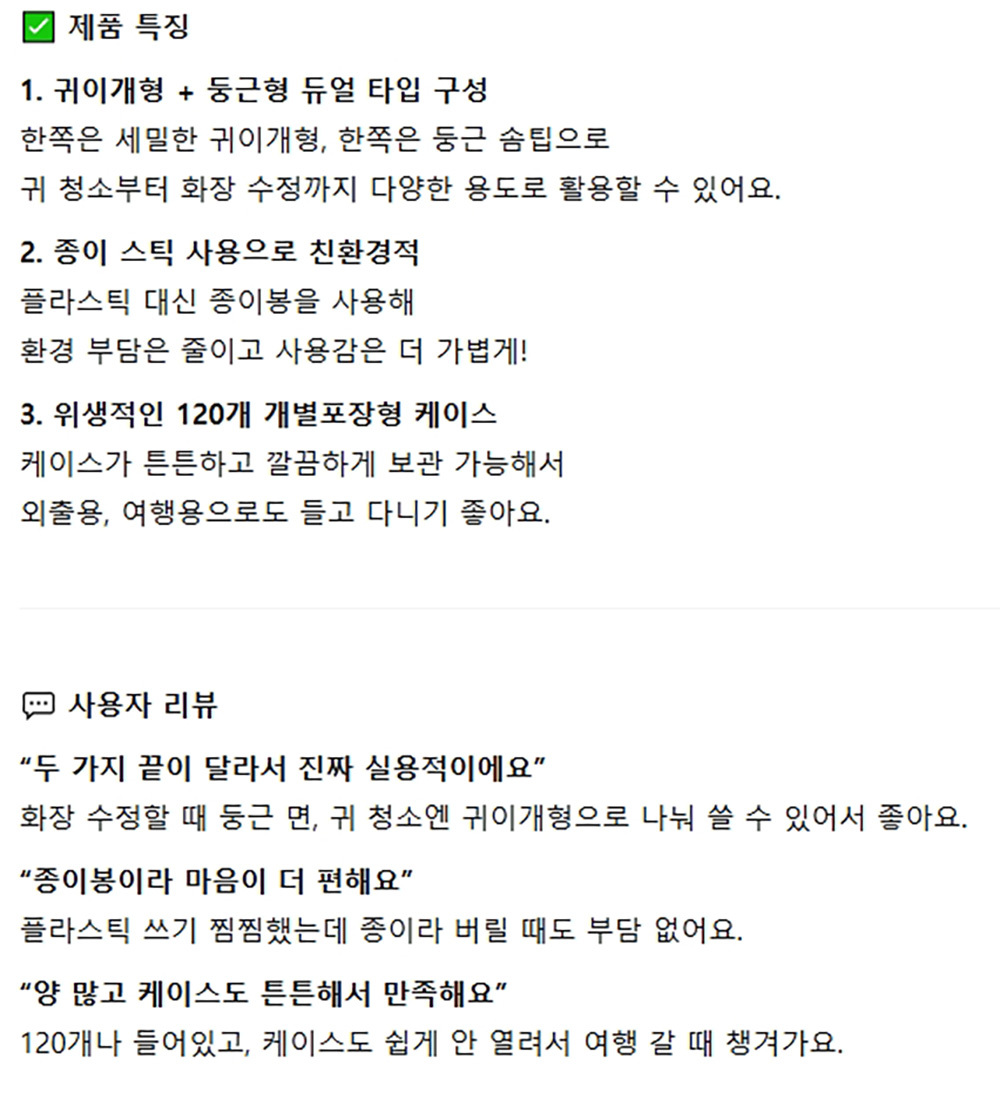 세밀한 귀이개 둥근 솜팁 2가지타입 면봉 120입 10통