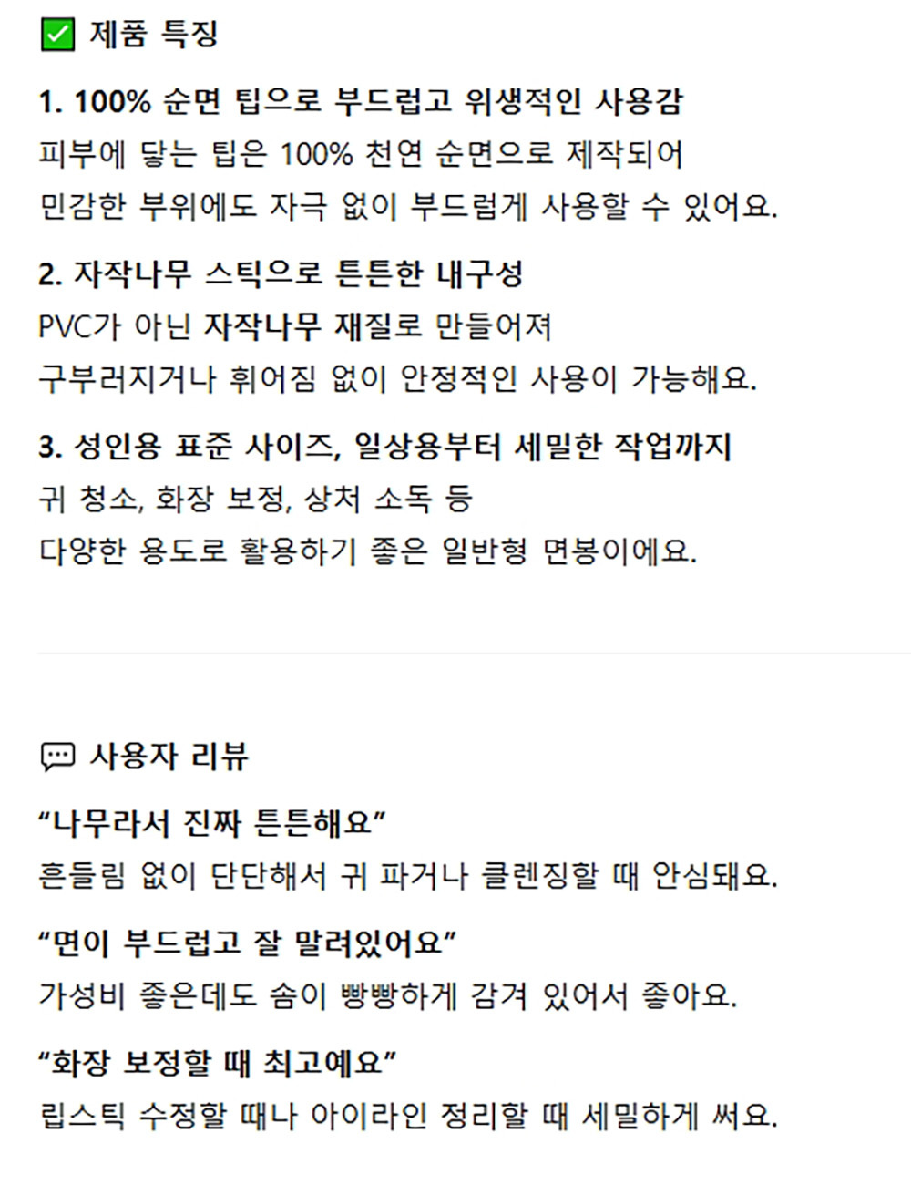 귀청소 화장보정 다용도 자작나무 면봉 100입 10통
