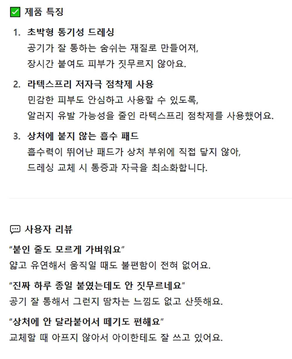 일러지 적은 라텍스프리 점착제 큰상쳐 전용밴드 7매