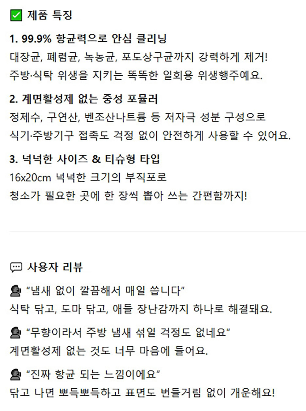 주방 식탁위생을 지키는 똑똑한 일회용 위생행주 90매