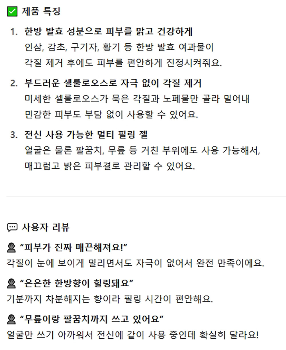 피부가 진짜 매끈해져요 각질관리 한방 필링젤 180ml