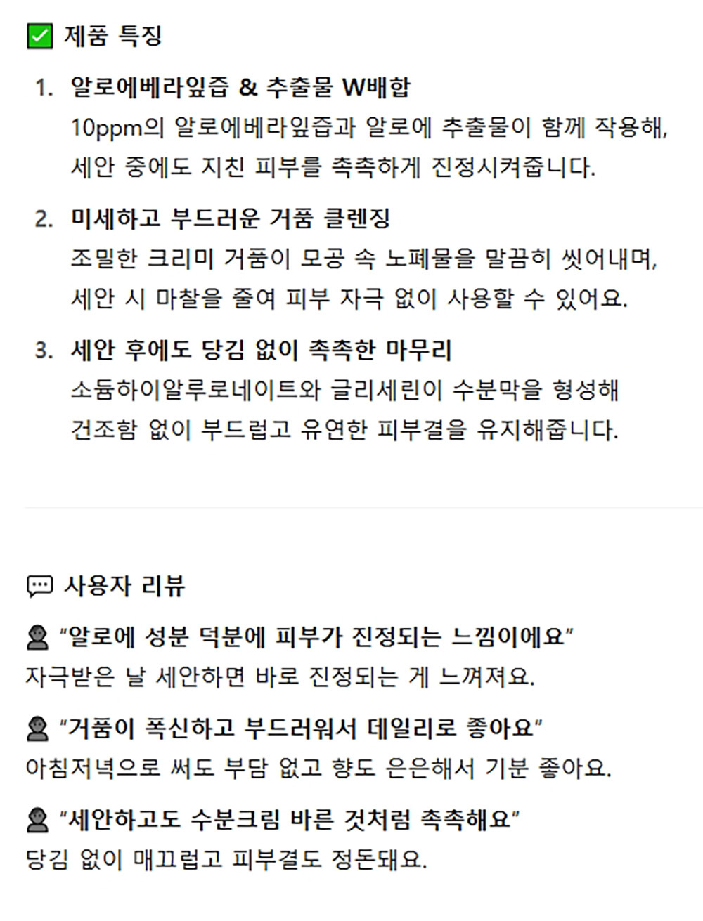 미세하고 부드러운 거품 알로에 세안 폼클렌저 180ml