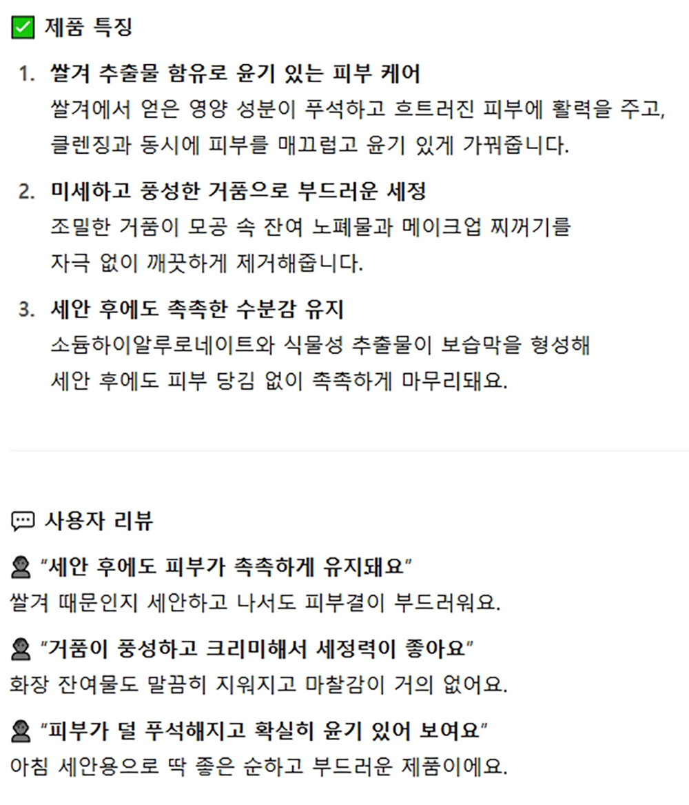 윤기 있는 피부 케어 쌀겨추출물 세안 폼클렌저 180ml