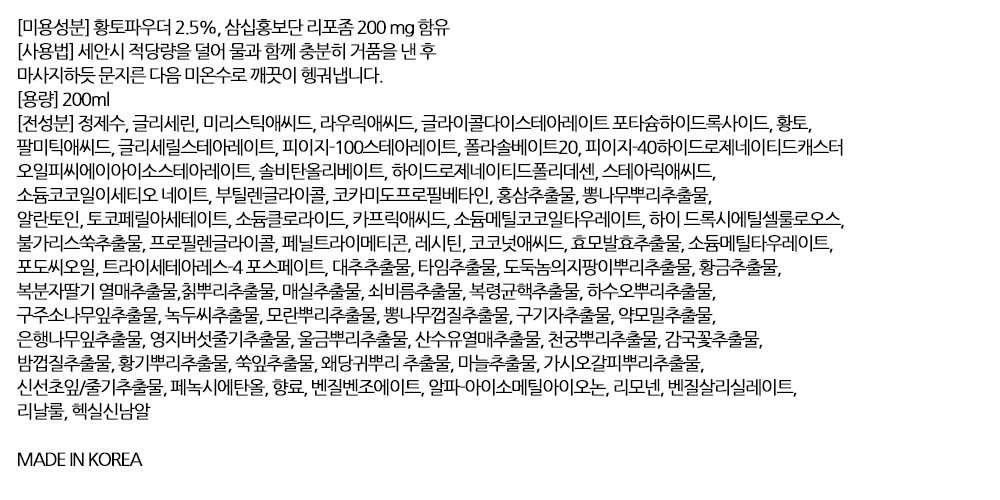 미세하고 부드러운 거품 황토성분 딥 폼클렌징 200ml