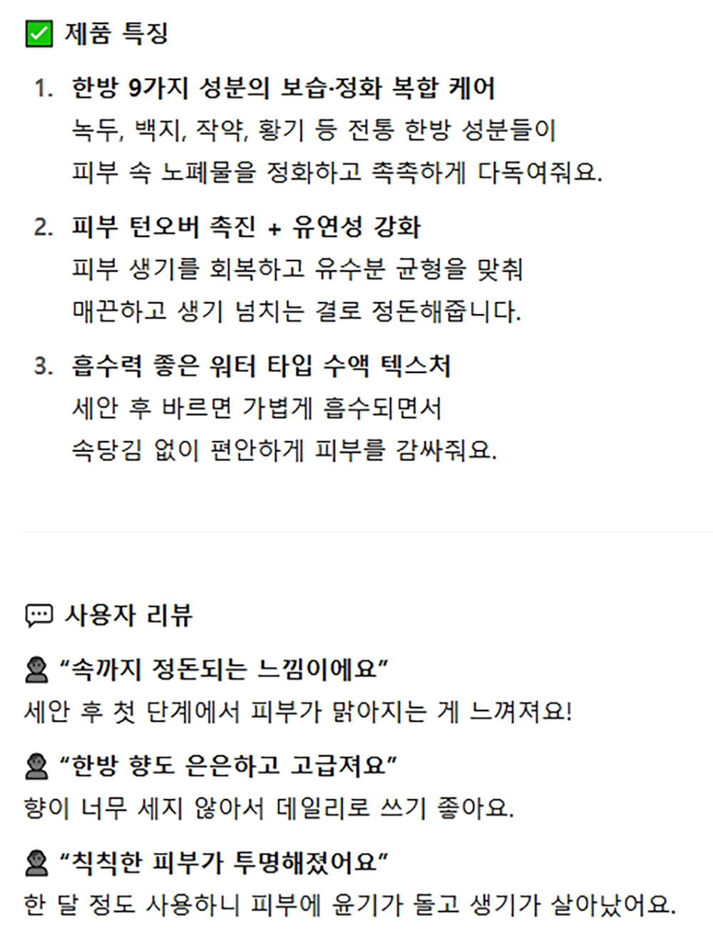 속부터 정돈되는 느낌 한방 9가지성분 여성스킨 150ml