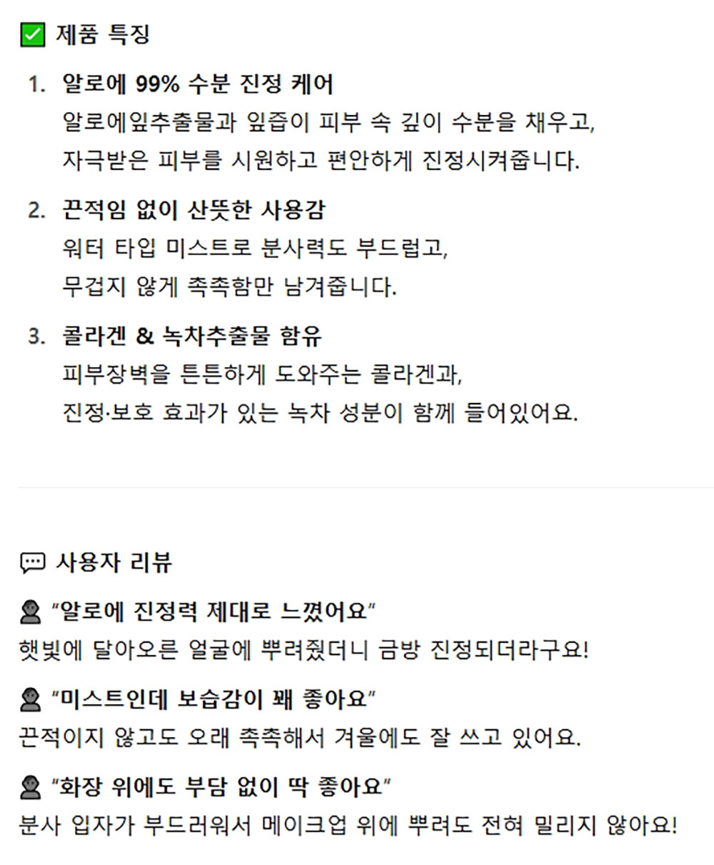 피부 속 깊이 수분을 채워주는 알로에 미스트 100ml