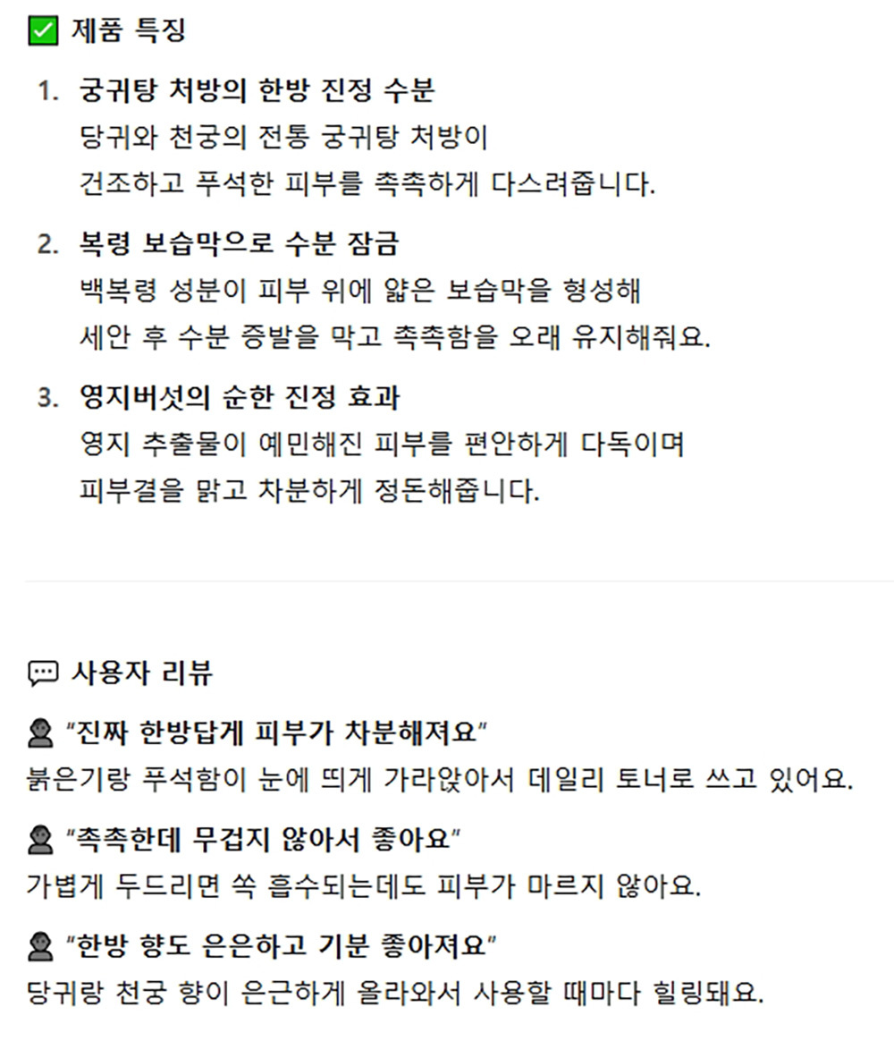 촉촉한데 무겁지 않아서 좋아요 한방 여성 스킨 200ml
