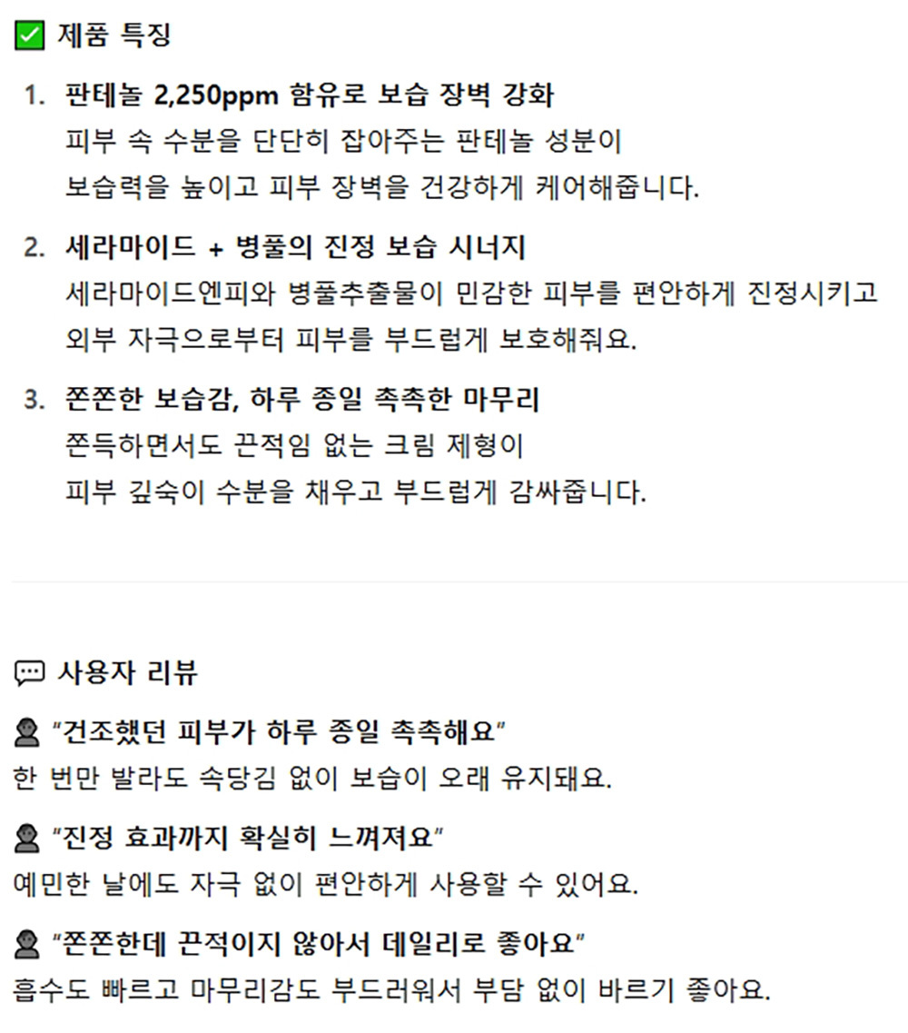 피부 속 수분 단단히 잡아주는 판테놀 여성크림 100ml