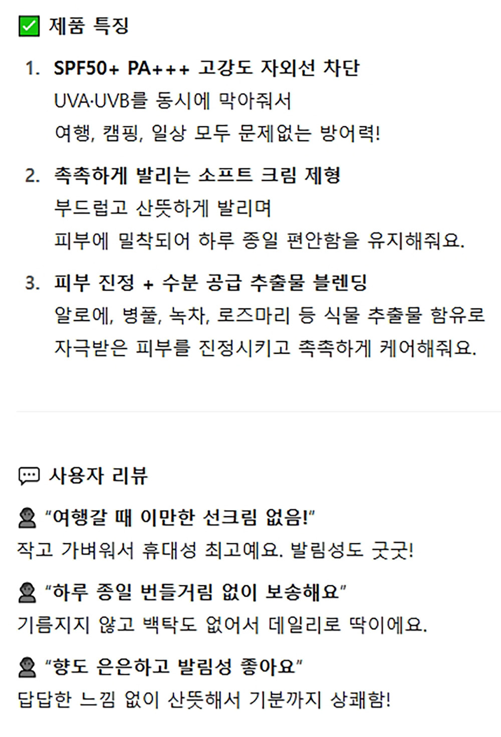 촉촉하게 발리는 소프트 크림제형 자외선 썬크림 50ml