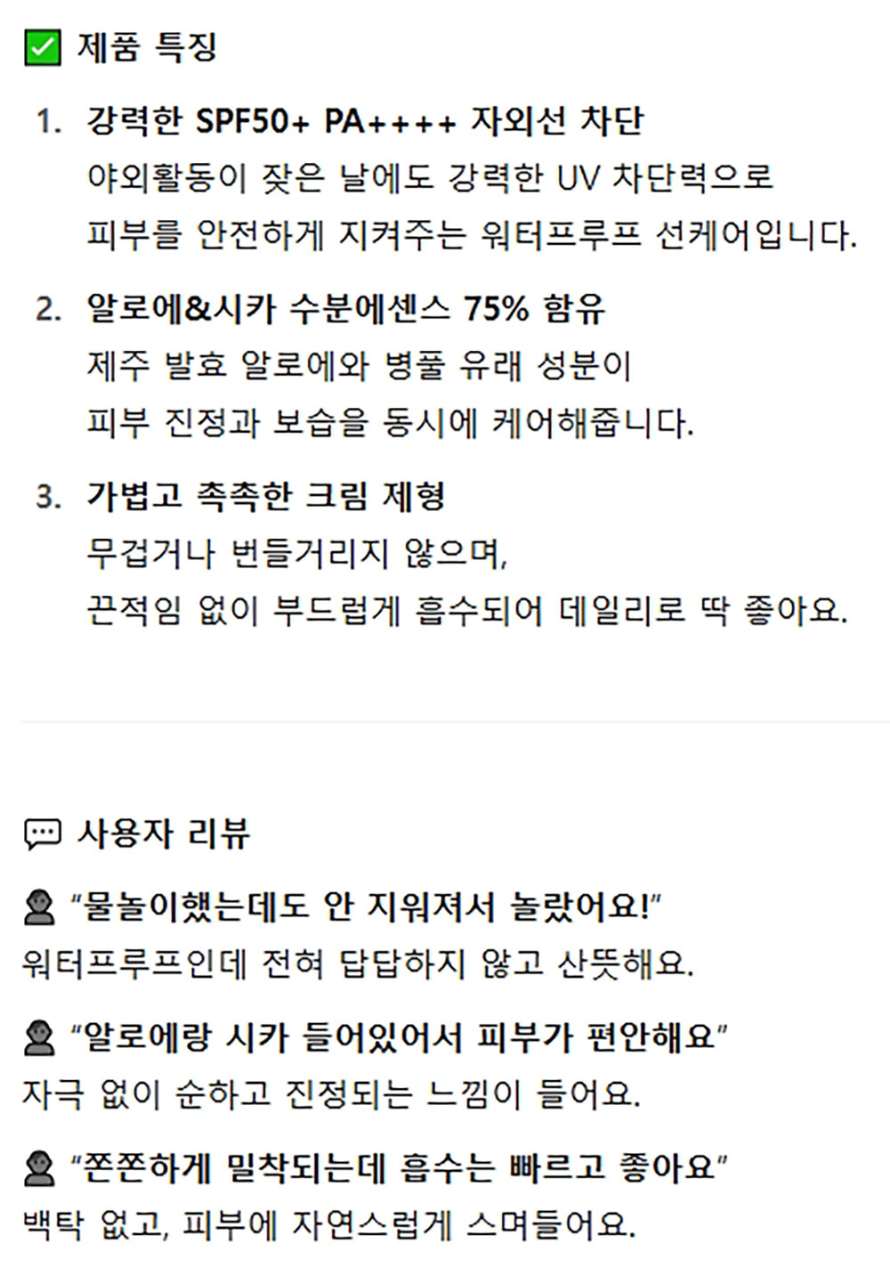 제주 발효 알로에 병풀 피부 진정보습 선크림 100ml
