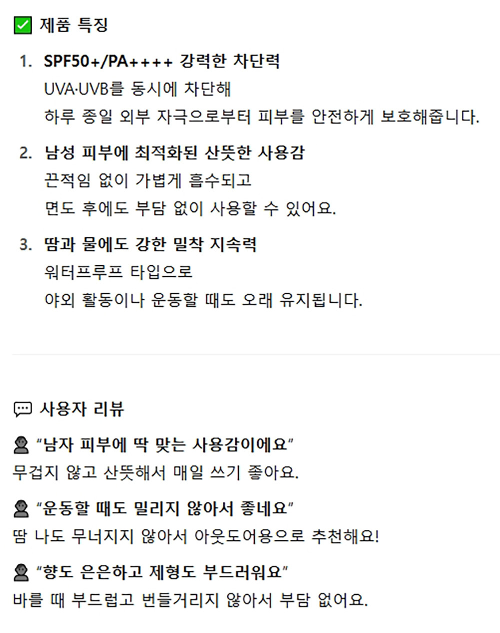 끈적임없이 가볍게 흡수 남성전용 자외선 선크림 50ml