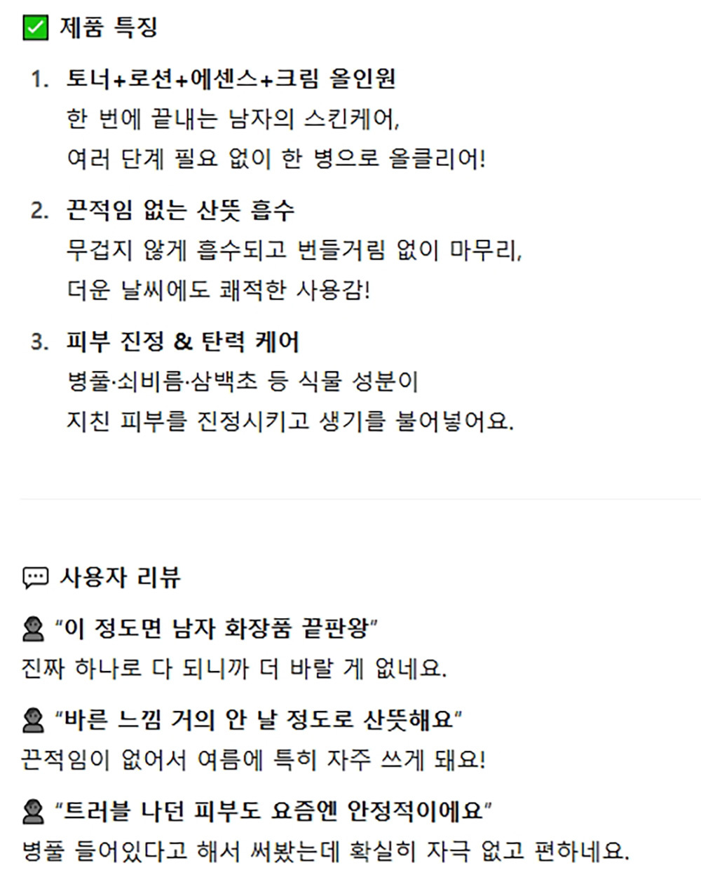 여러 단계 필요없이 한 번에 끝내는 남성올인원 250ml