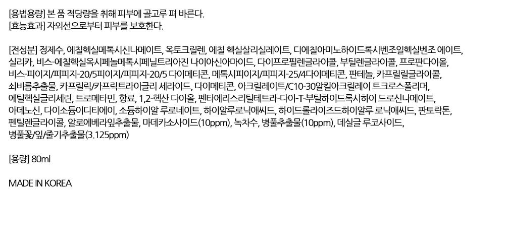 산뜻 촉촉 시카 알로에 진정효과 자외선 선크림 80ml