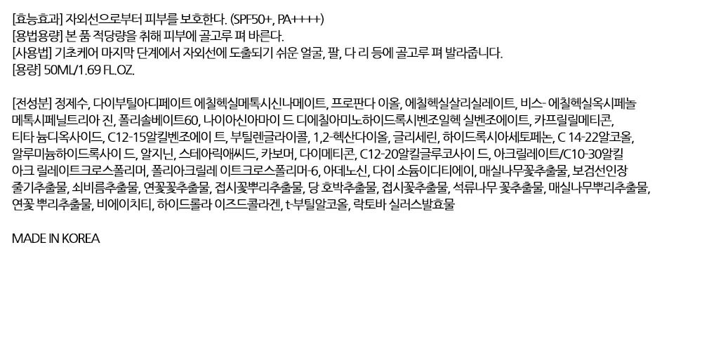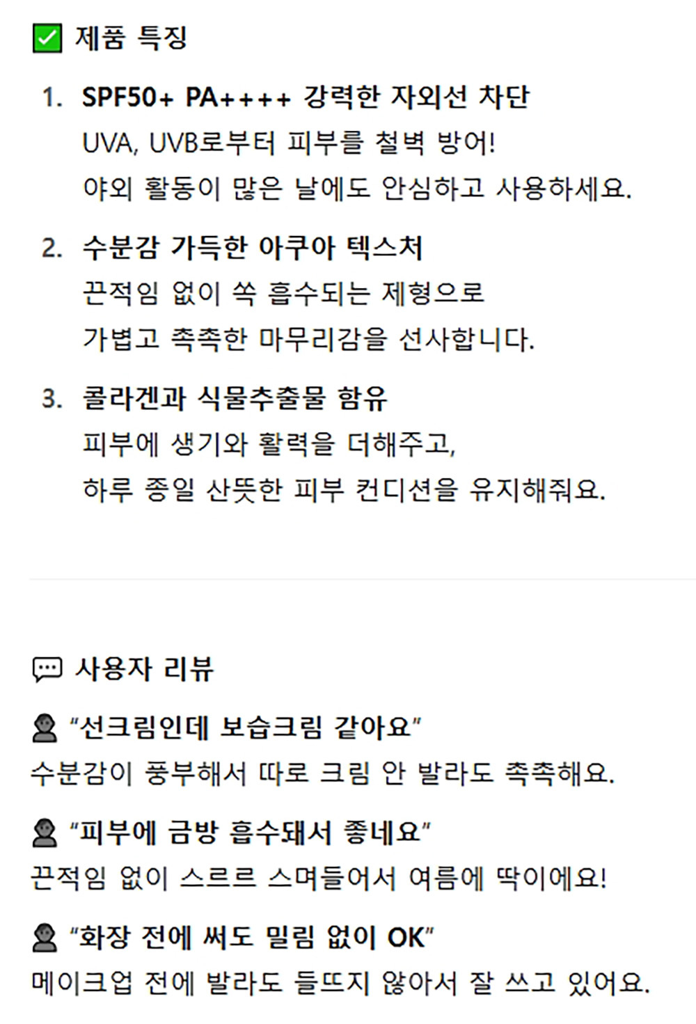 수분감 가득한 아쿠아 텍스처 자외선 선크림 50ml