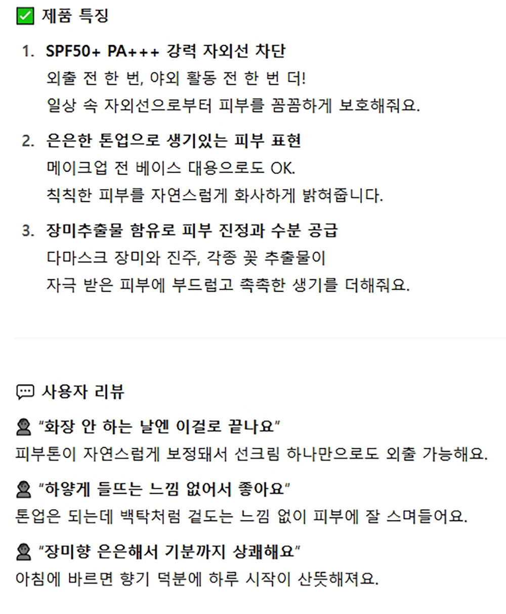 생기있는 피부표현 메이크업 베이스겸용 선크림 70ml