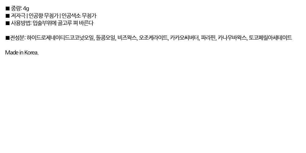 부드럽고 하루종일 촉촉하게 입술 집중 보습 립밤 4g
