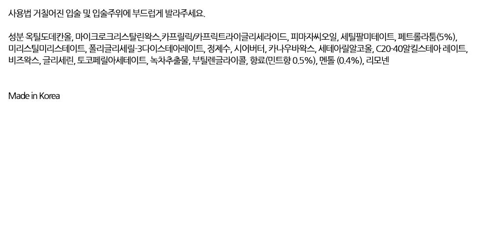 멘톨의 쿨링감으로 상쾌한 입술케어 민트 립밤 4.8g