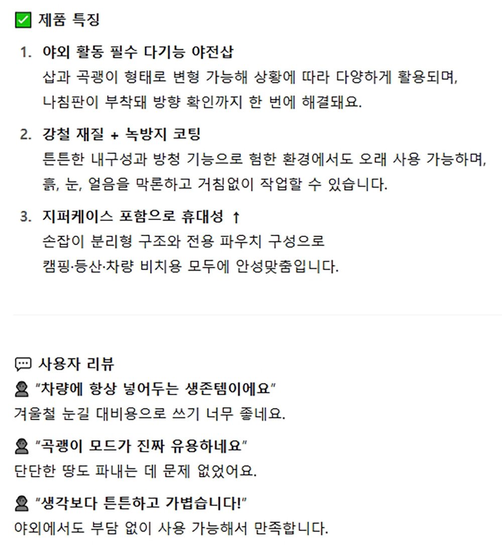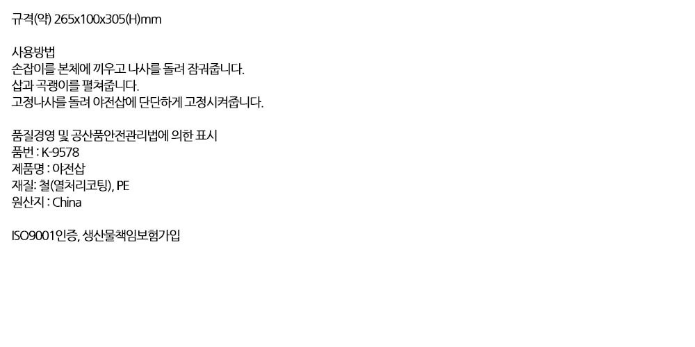 튼튼한 내구성 강철재질 녹방지코팅 다기능 야전삽