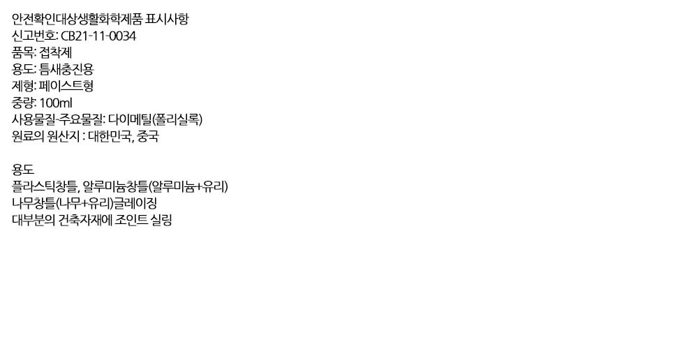 손쉽고 간편 가정용 타일 창틀 보수용품 실리콘 100ml