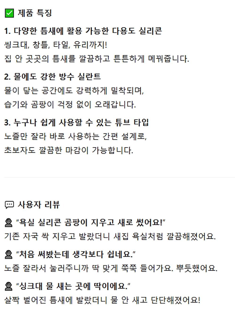 씽크대 판넬틈새 콘크리트크랙 보수 실리콘 투명 80g