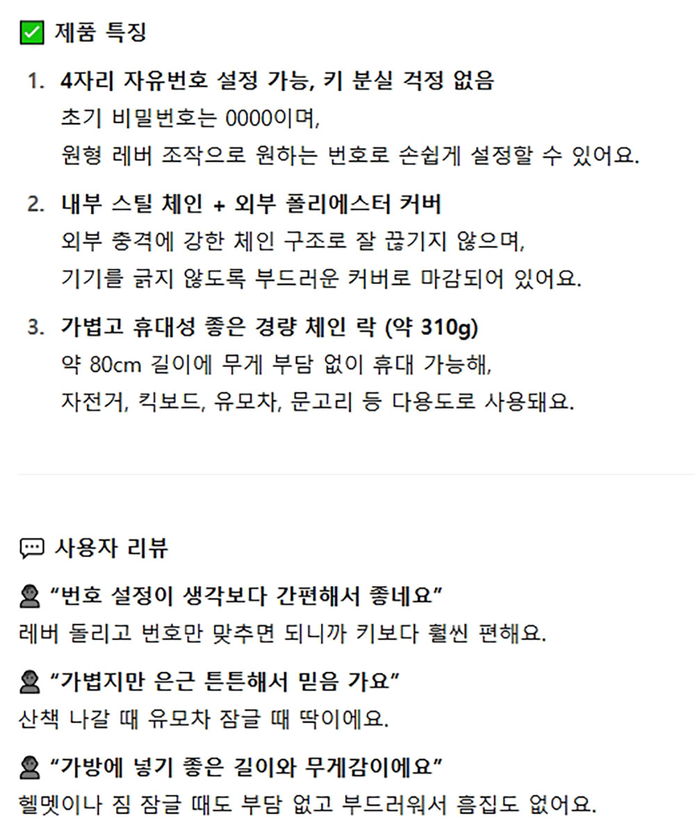 가볍고 휴대성 좋은 경량 체인 락 자전거용품 자물쇠