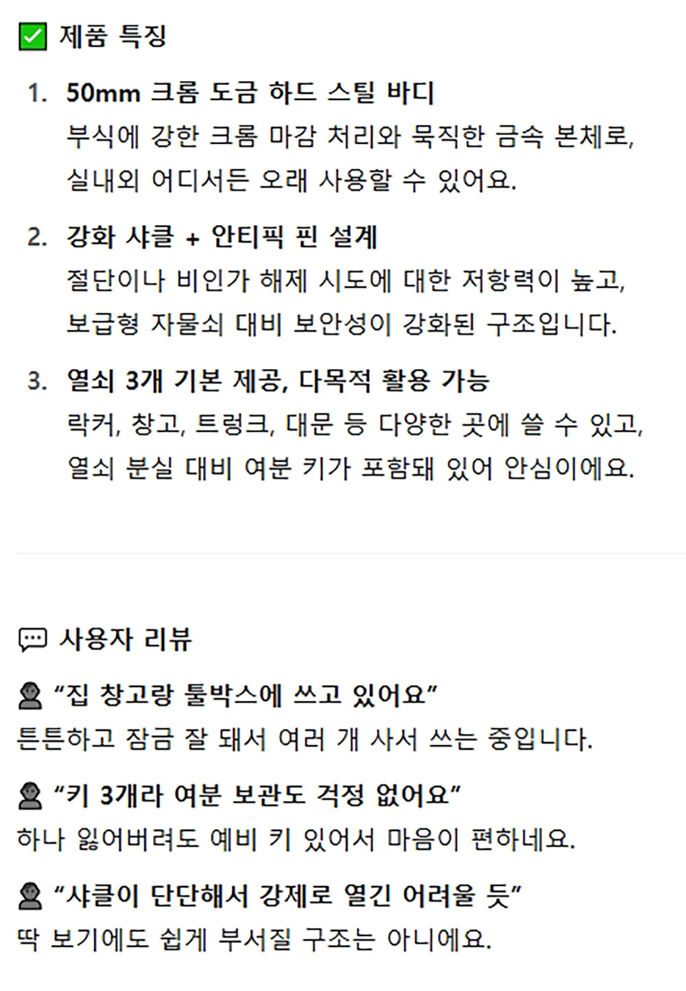 실내외 어디서든 오래 사용가능 보안 자물쇠 50mm 대