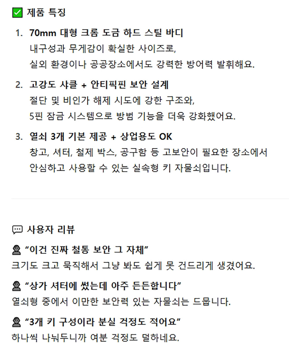 예비 키 포함 분실 걱정 적어요 보안용품 자물쇠 70mm