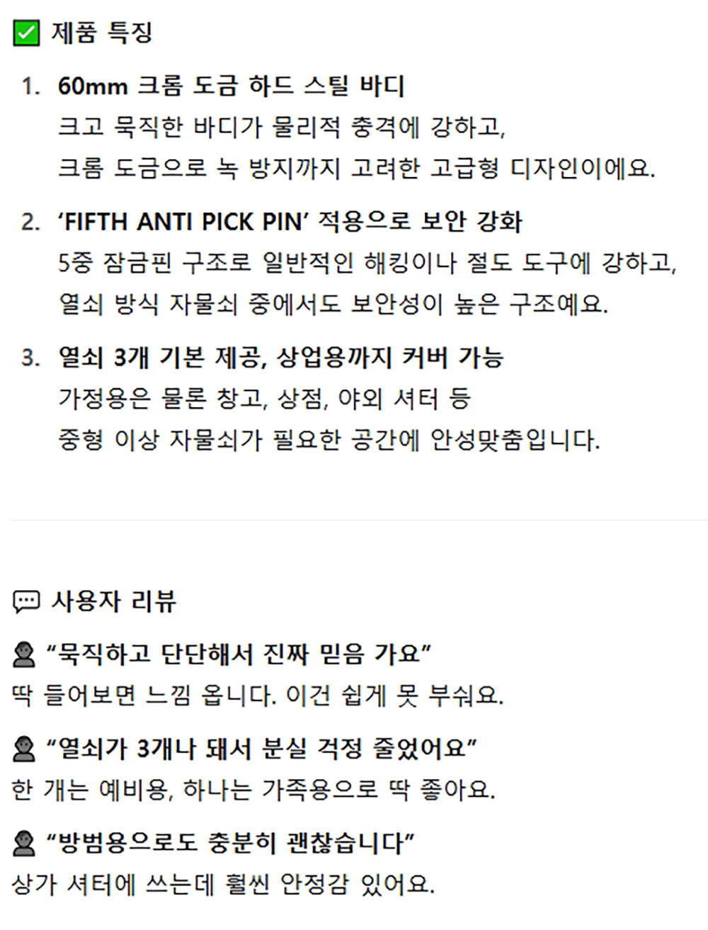 예비 키 포함 분실 걱정 적어요 보안용품 자물쇠 60mm
