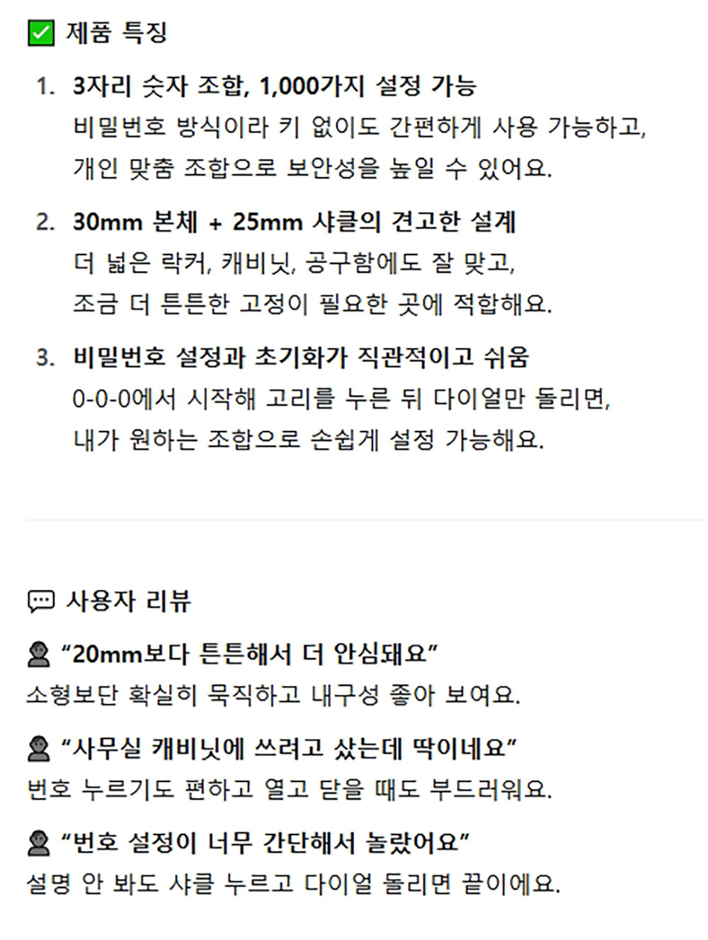 3가지 숫자조합 방식 간편 보안 비밀번호 자물쇠 30mm