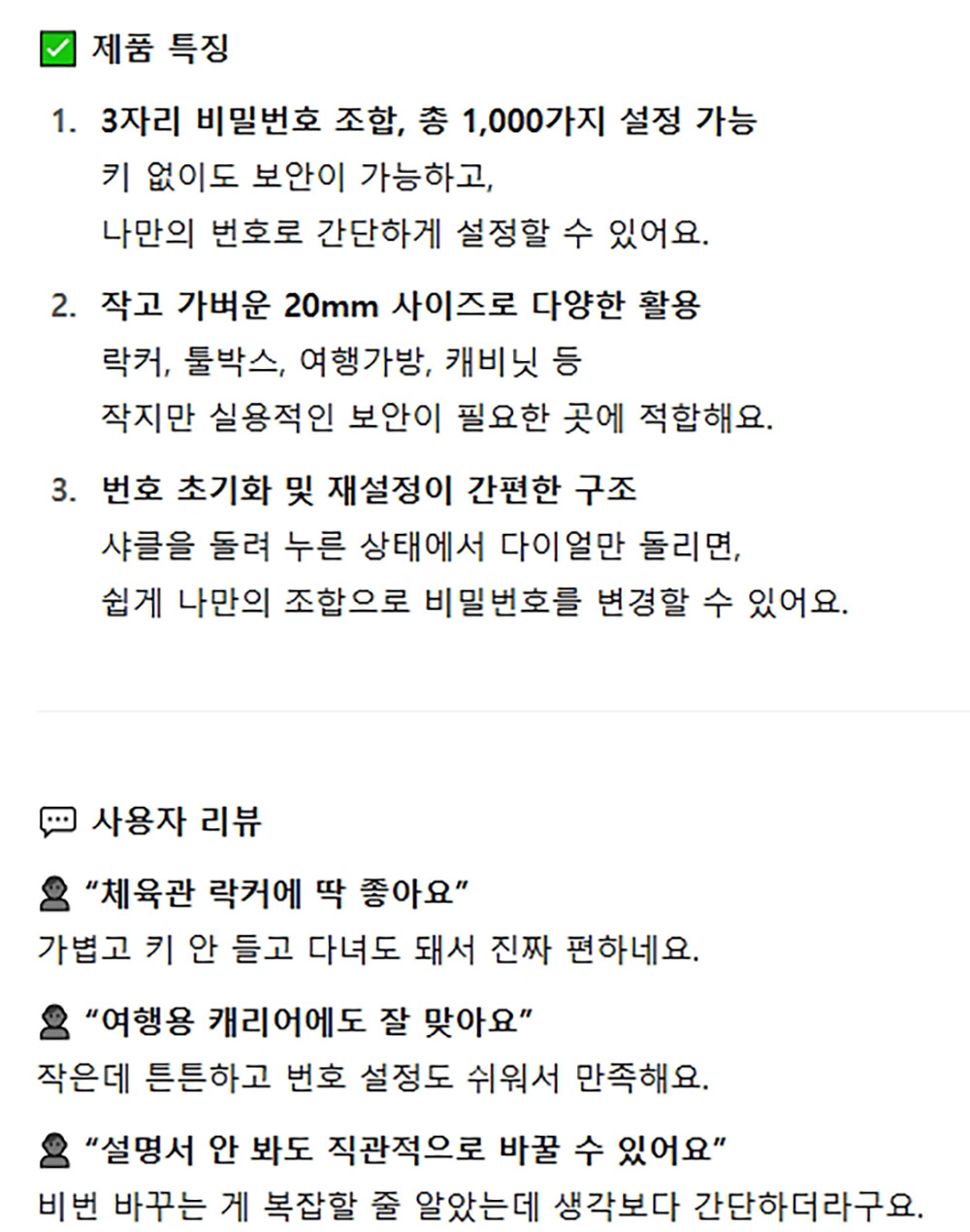 3가지 숫자조합 방식 간편 보안 비밀번호 자물쇠 20mm