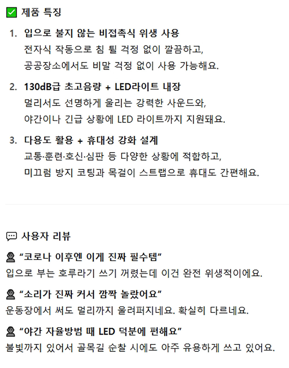 LED램프내장 목걸이끈 호신용 전자 호루라기 색상랜덤