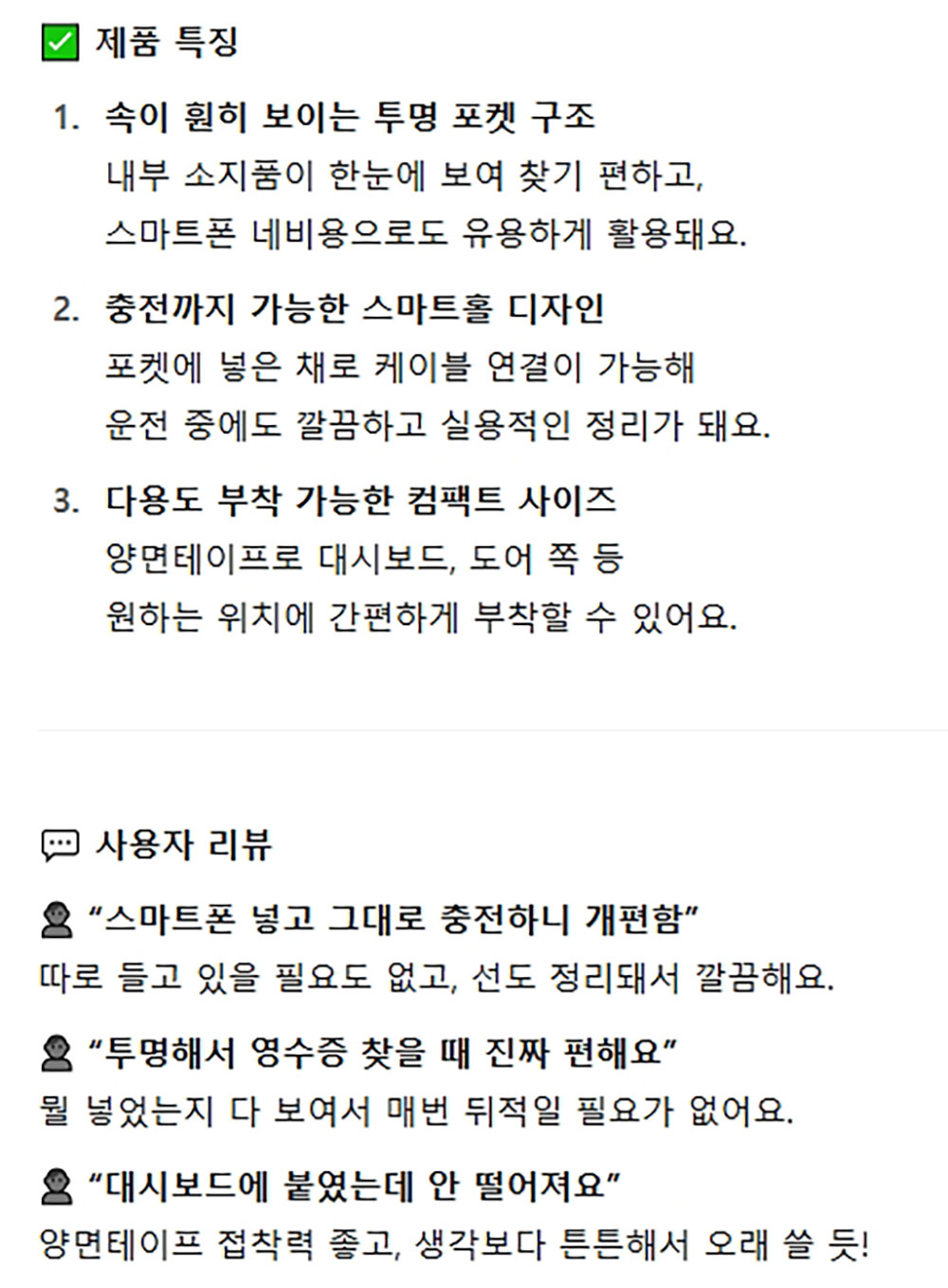 내부소품 보이는 투명한 디자인 자동차 수납용품 포켓