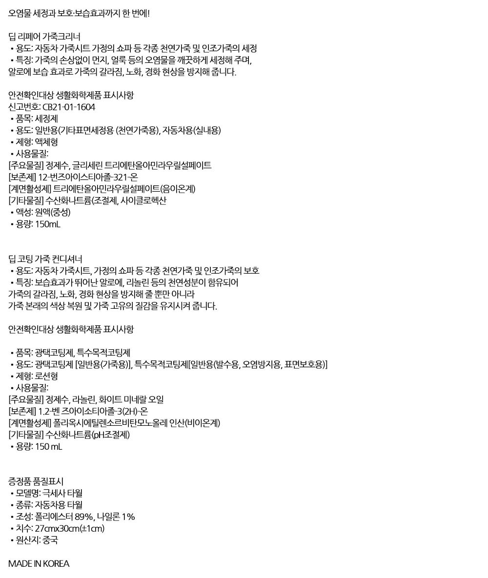 오염물세정 보호보습 자동차 실내가죽 풀케어 2종세트