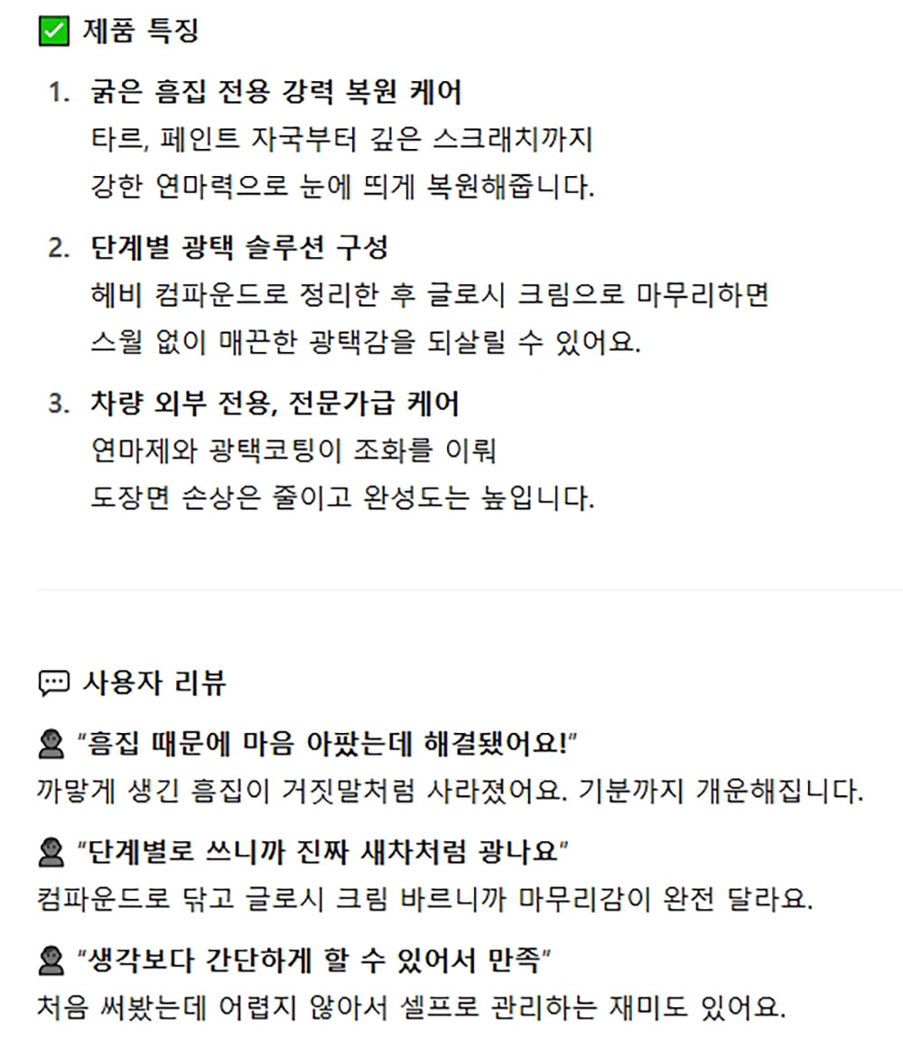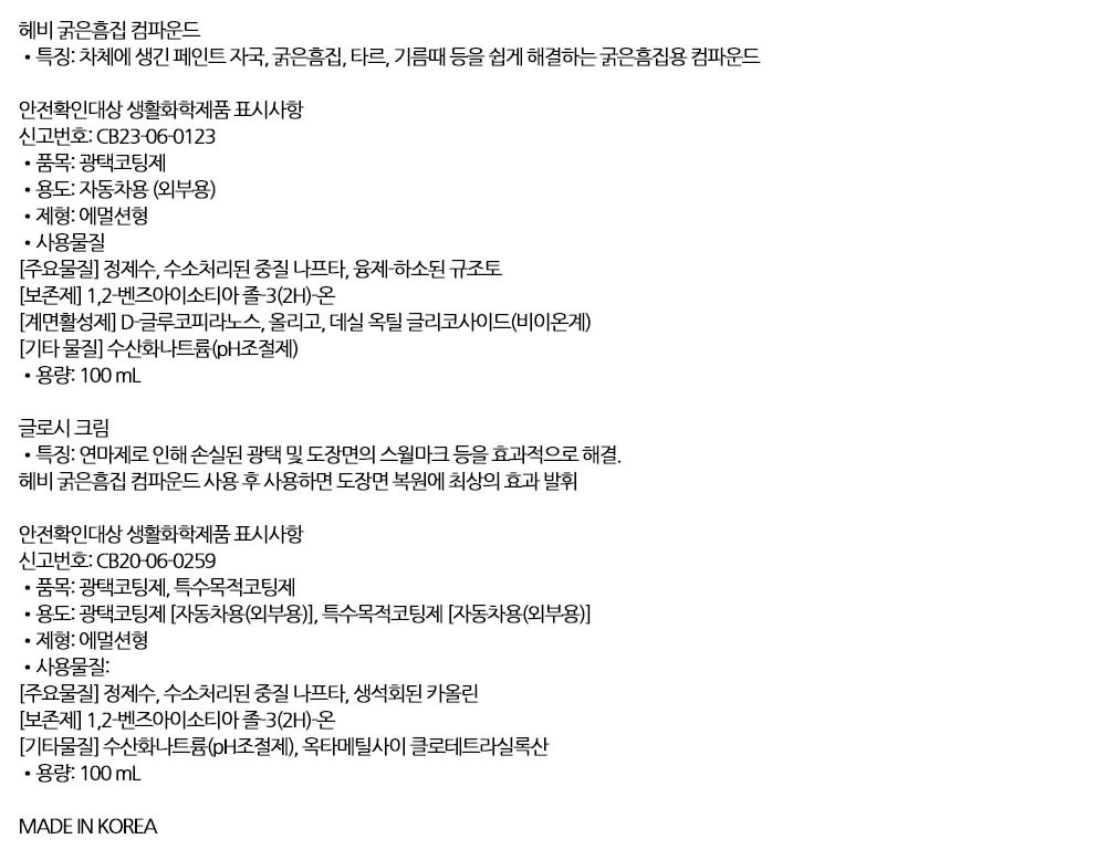 굵은 흡짐 전용 강력 케어 자동차 광택 복원 2종세트