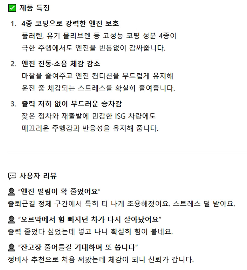가다서다 주행 환경이 많은 자동차 엔진오일 첨가제