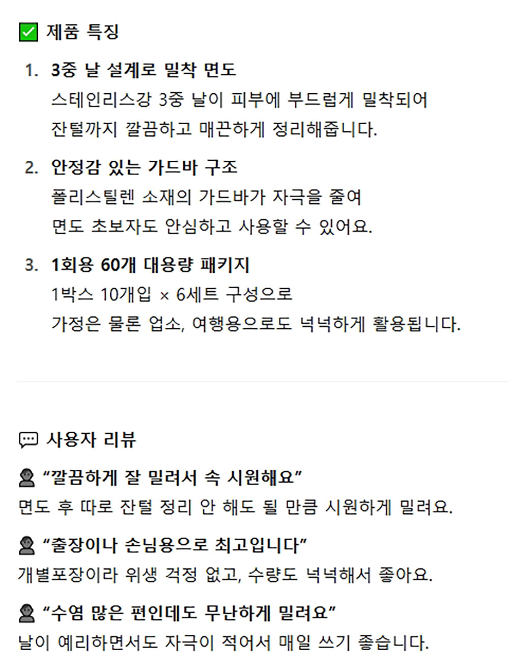 잔털까지 깔끔하고 매끈하게 정리 일회용 면도기 60개