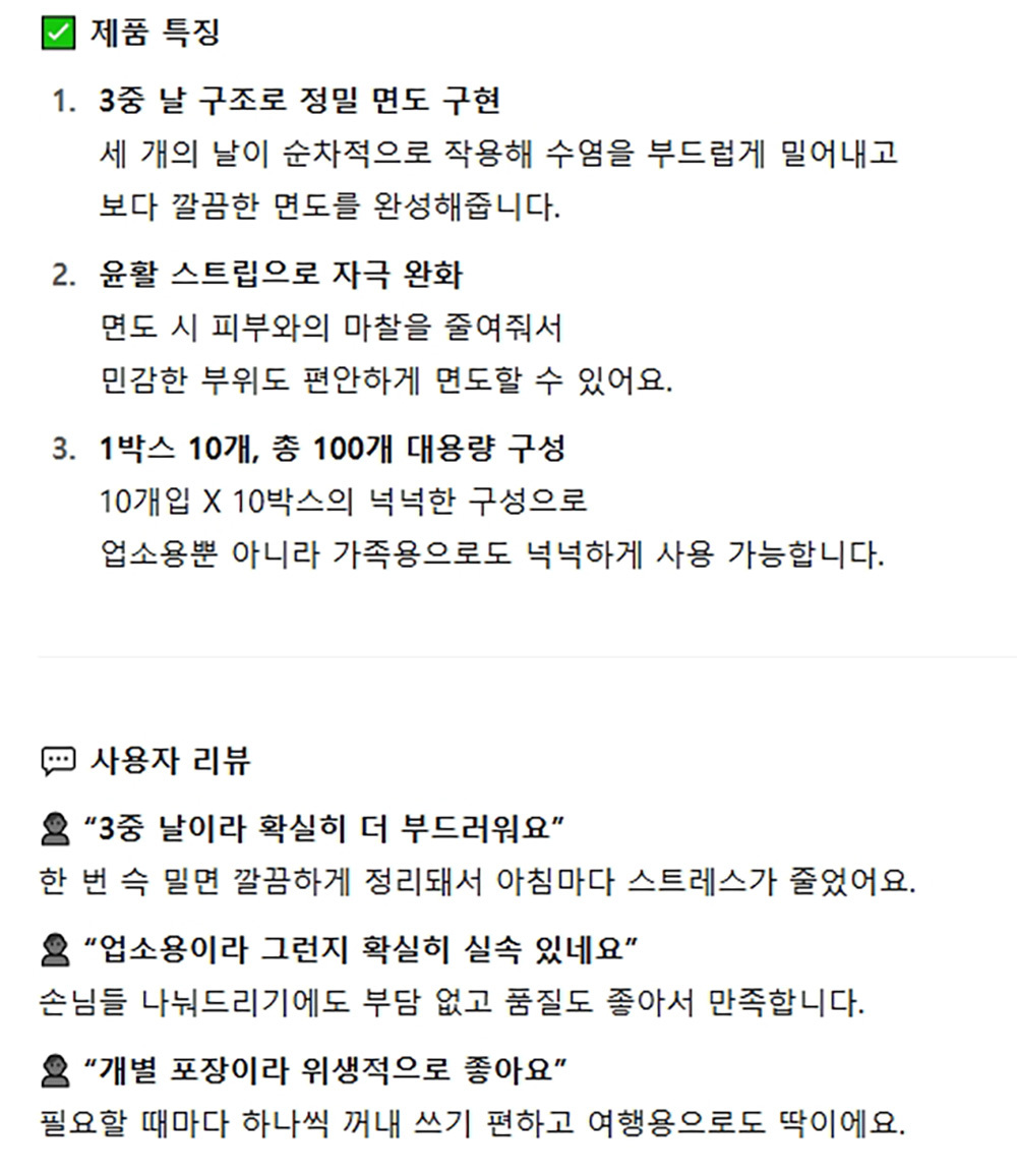 3중날이라 확실히 더 부드러워요 일회용 면도기 100개