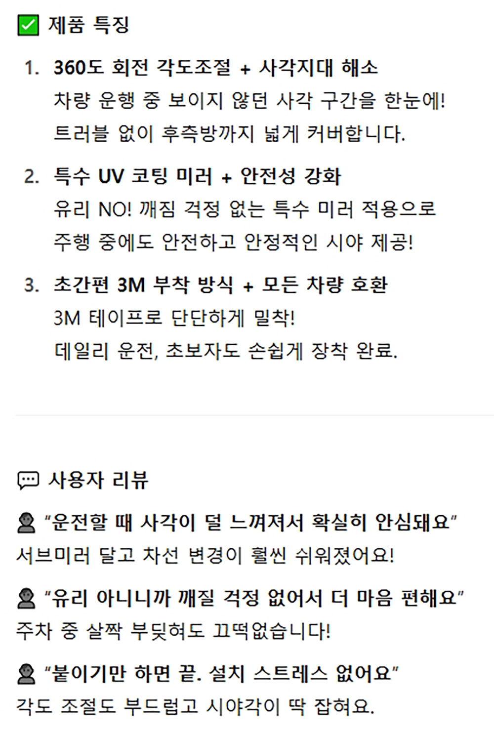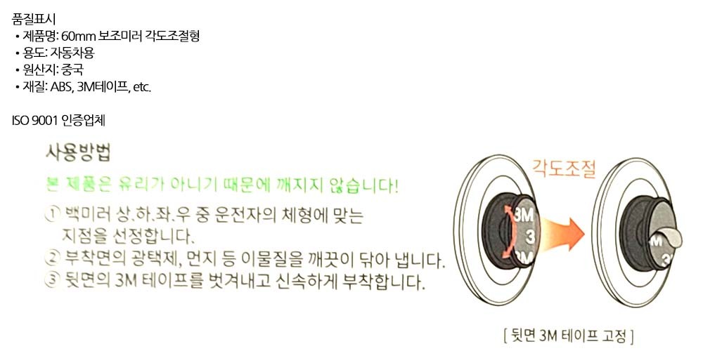 360도 각도조절 사각지대해소 자동차 사이드 보조미러