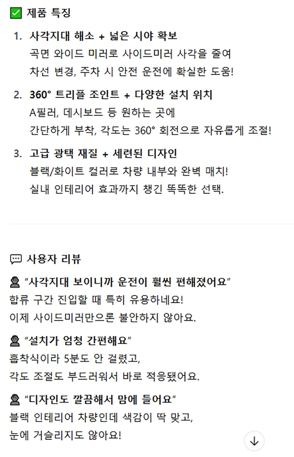 사이드미러 사각감소 초보운전자 운행 도움 보조미러