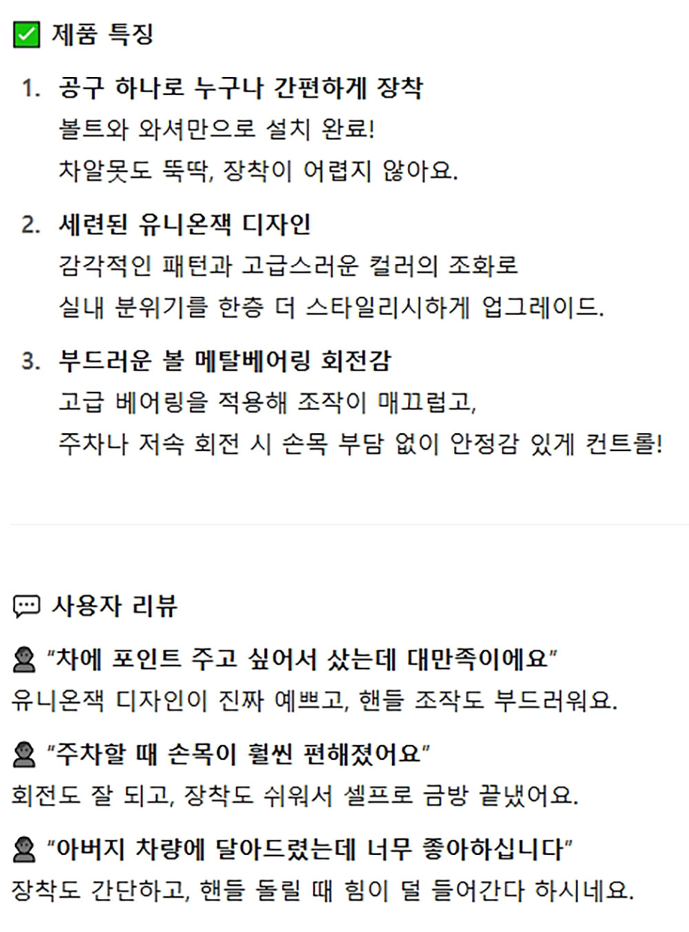 쉽고 간편한 장착 편안한 운전감각 자동차 파워핸들