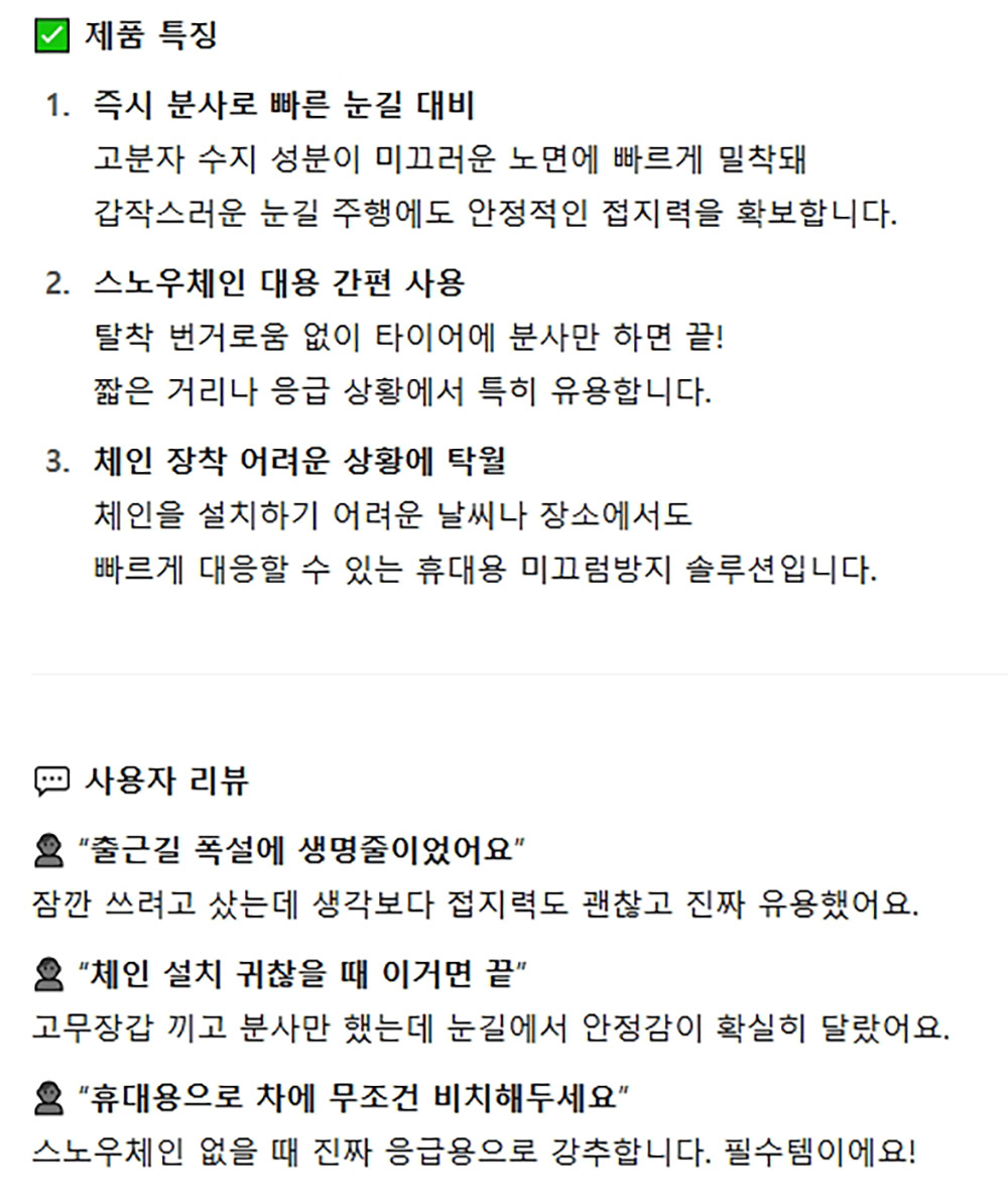 겨울철 눈길 주행시 미끄럼 방지 스프레이 체인 500ml