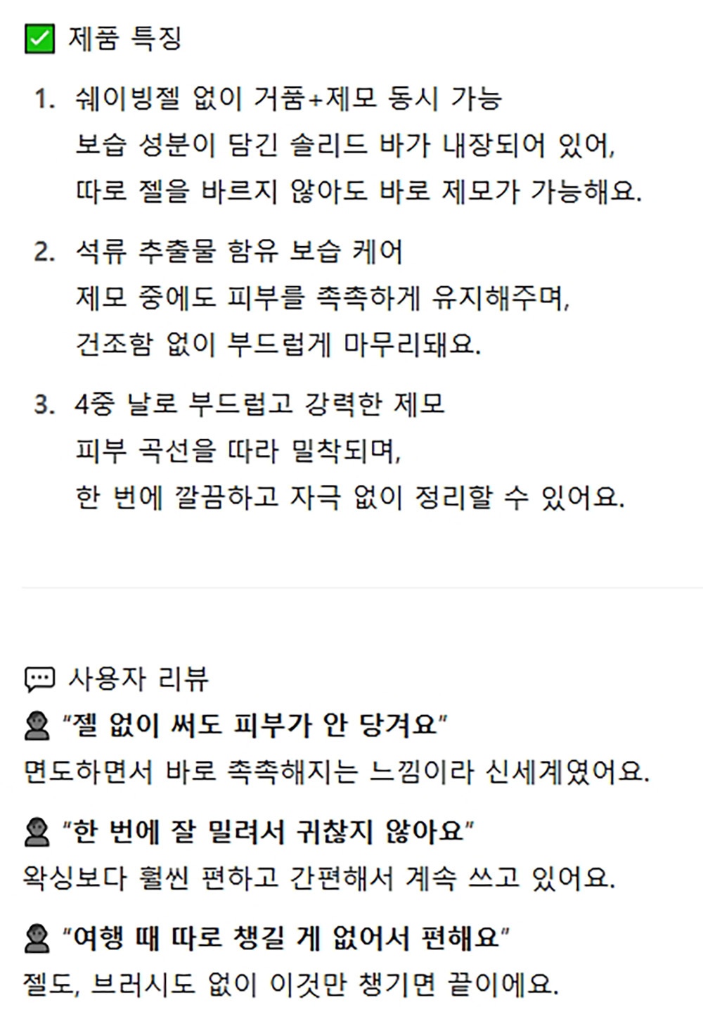 따로 쉐이빙젤 없이 써도 피부가 안당겨요 여성제모기