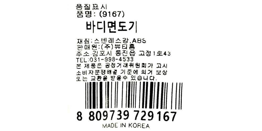 미끄럼방지 인체공학적 손잡이 바디면도기 1입 스카이