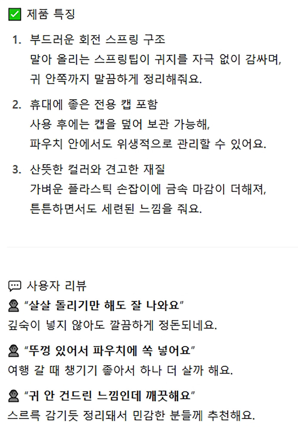 살살 돌리기만 해도 말끔하게 잘나와요 귀이개 스카이