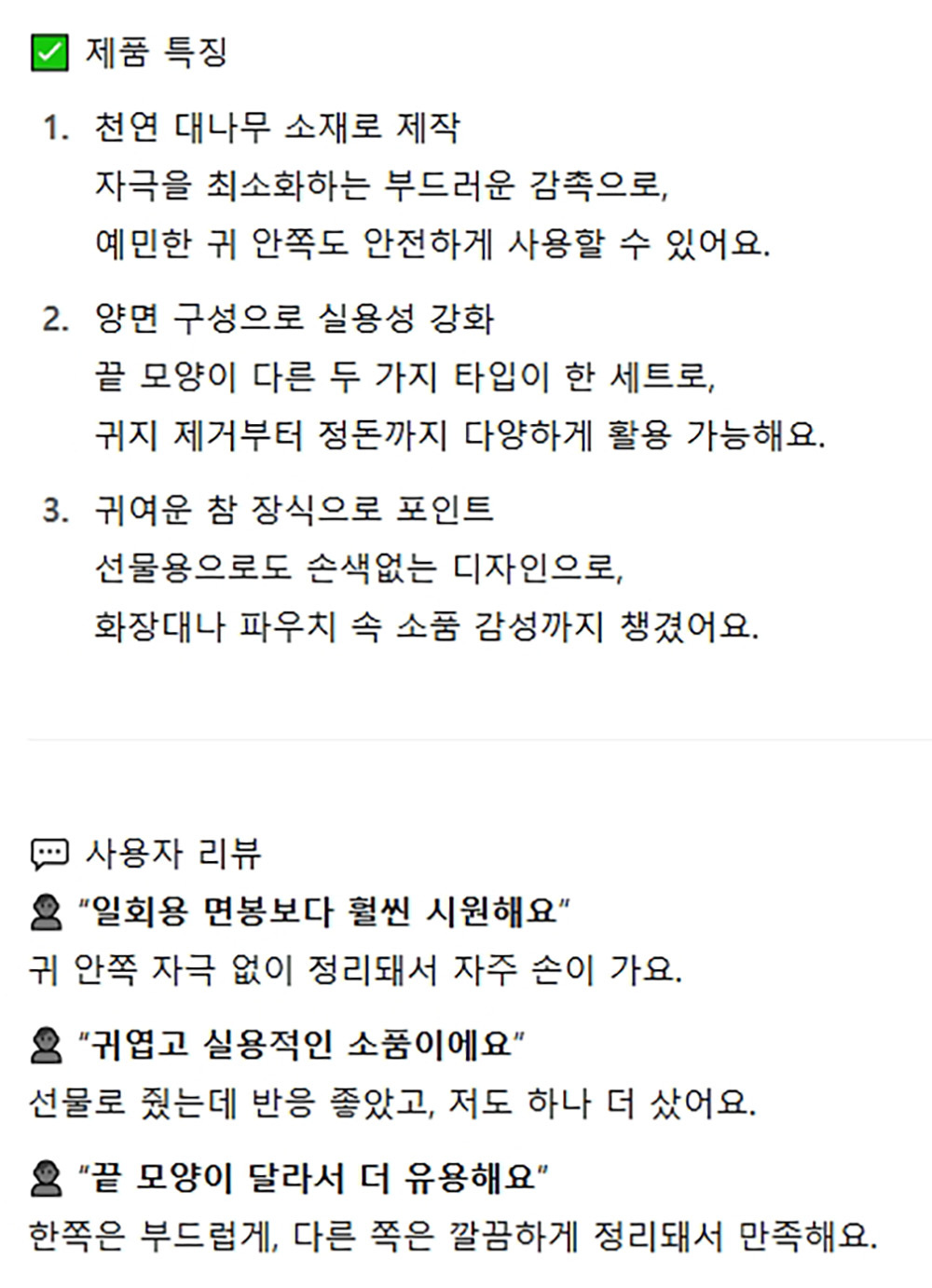 예민한 귀 안쪽도 안전하게 귀지 제거 대나무 귀이개