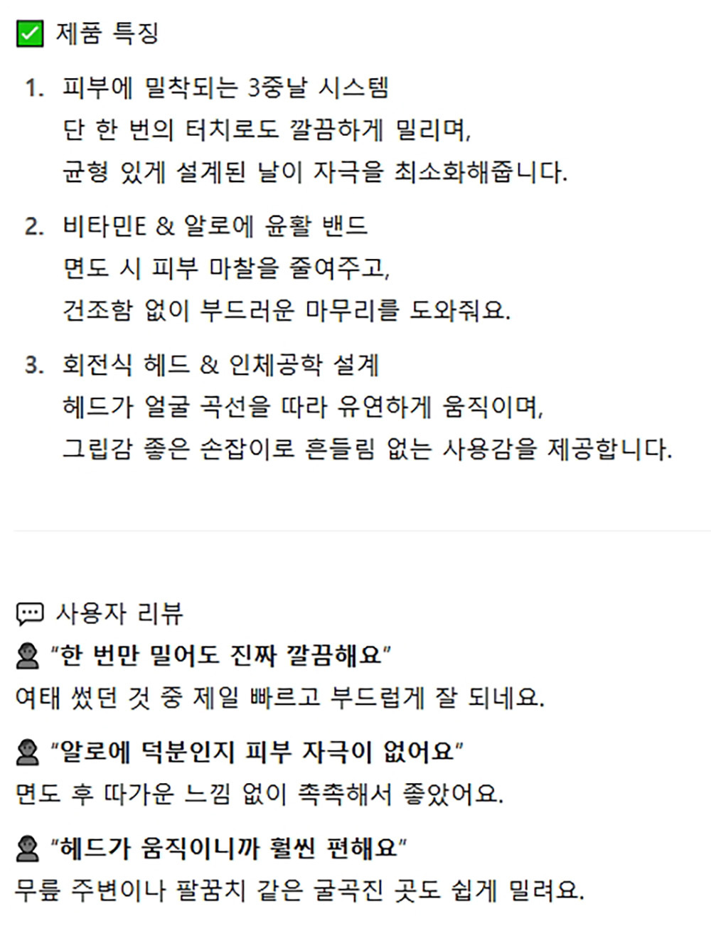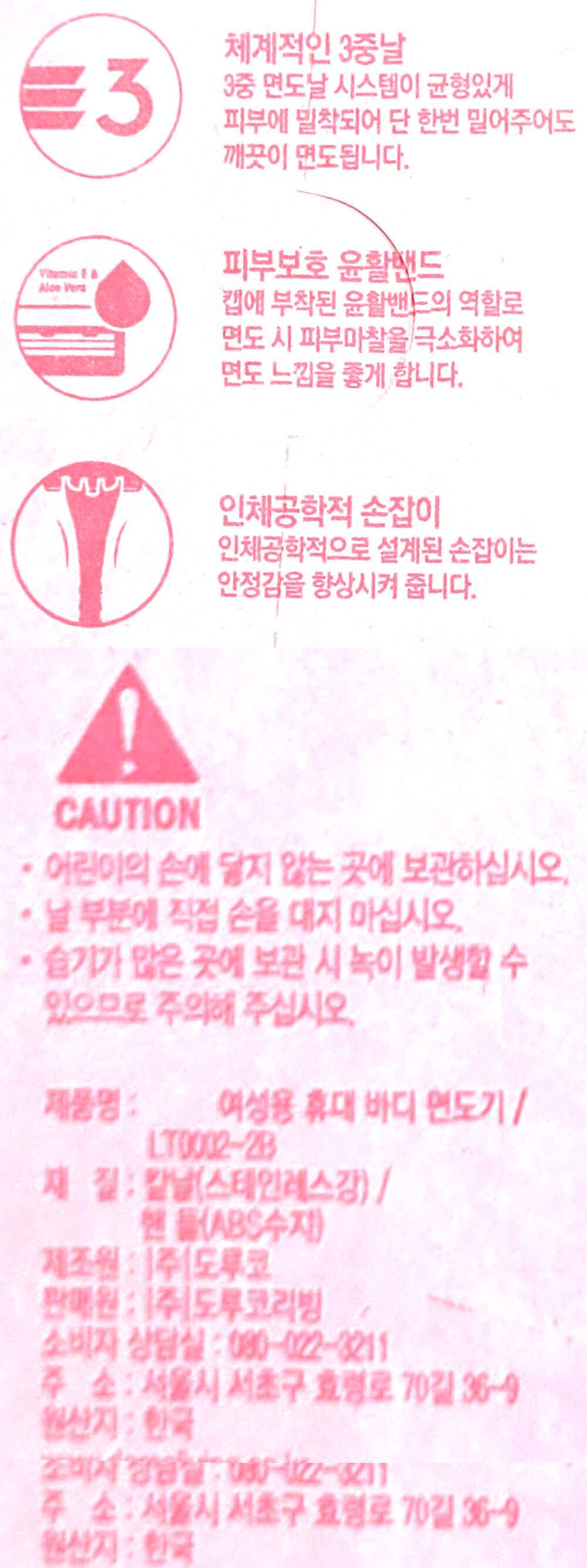 피부에 밀착 3중날 시스템 회전식헤드 여성면도기 2입