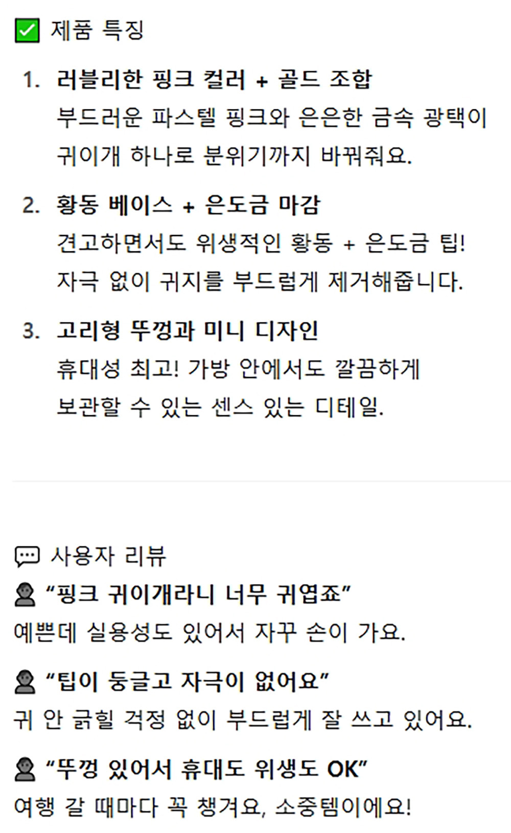 뚜껑 있어서 휴대가 너무 편해요 고급 은귀이개 핑크