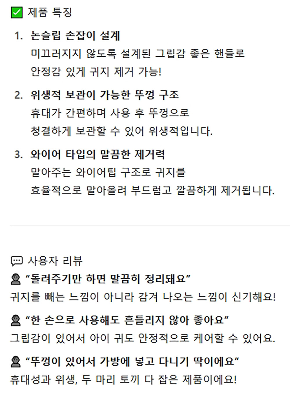 미끄러지지 않도록 설계된 그립감 좋은 귀이개 스카이