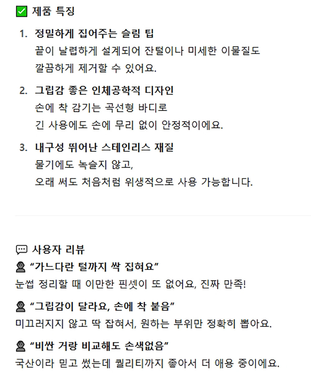 끝이 날렵하게 설계 미세한 잔털 깔끔하게 제거 쪽철